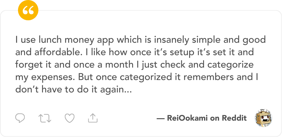 I think Lunch Money is my third attempt to adopt proper financial management habits. I’ve tried different things over the years, starting with Google Spreadsheets and then various apps. At one point, I was even considering “vibe coding” my own custom solution based on ledger-cli.
