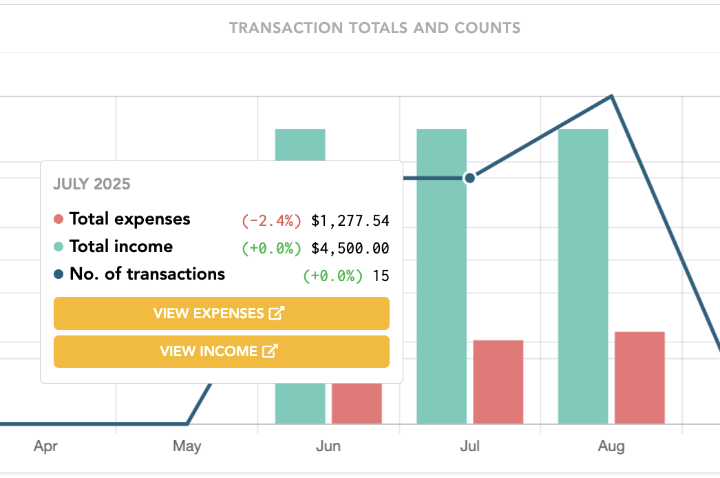 Easily track your average income and expenses with synced banking transactions in Lunch Money.
