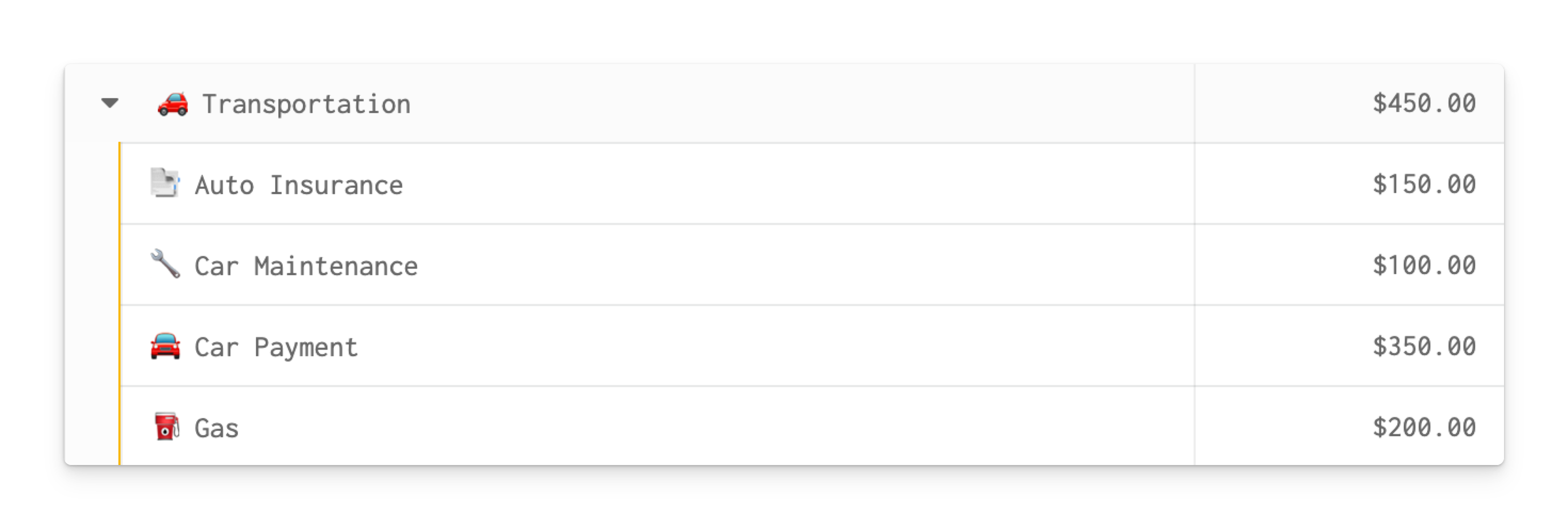 Create line items in your budget for each of these costs to track your spending. You can create a category group to see exactly what you are spending on transportation.