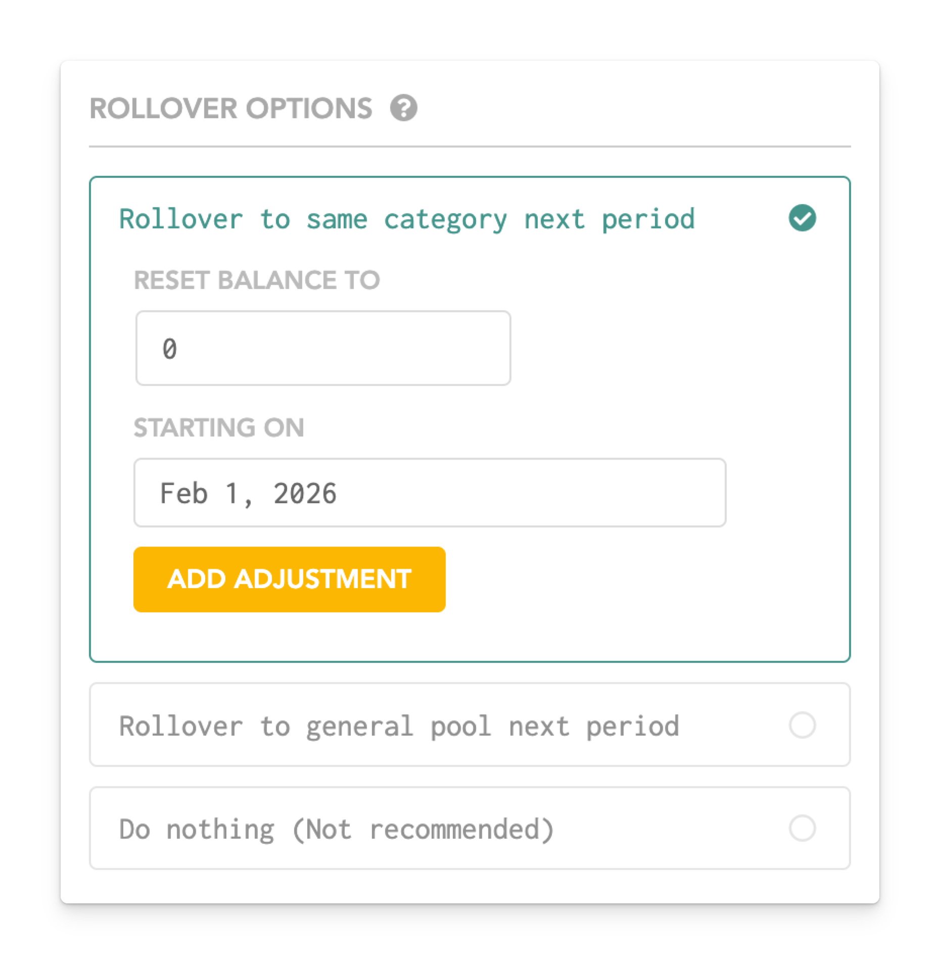 If you are creating a line item, set the category to roll over the unspent money into the same category at the end of the month. The fund will increase each month, and you’ll be able to see exactly how much you have saved.